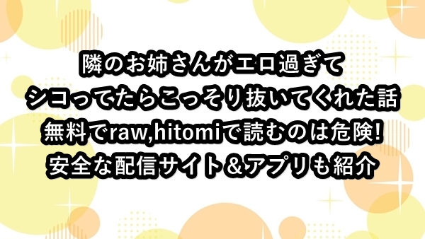 隣のお姉さんがエロ過ぎてシコってたらこっそり抜いてくれた話は無料でraw,hitomiで読むのは危険!安全な配信サイト&アプリも紹介